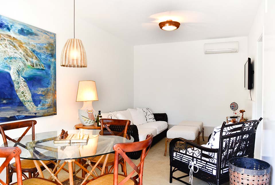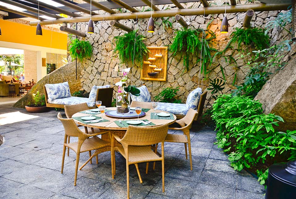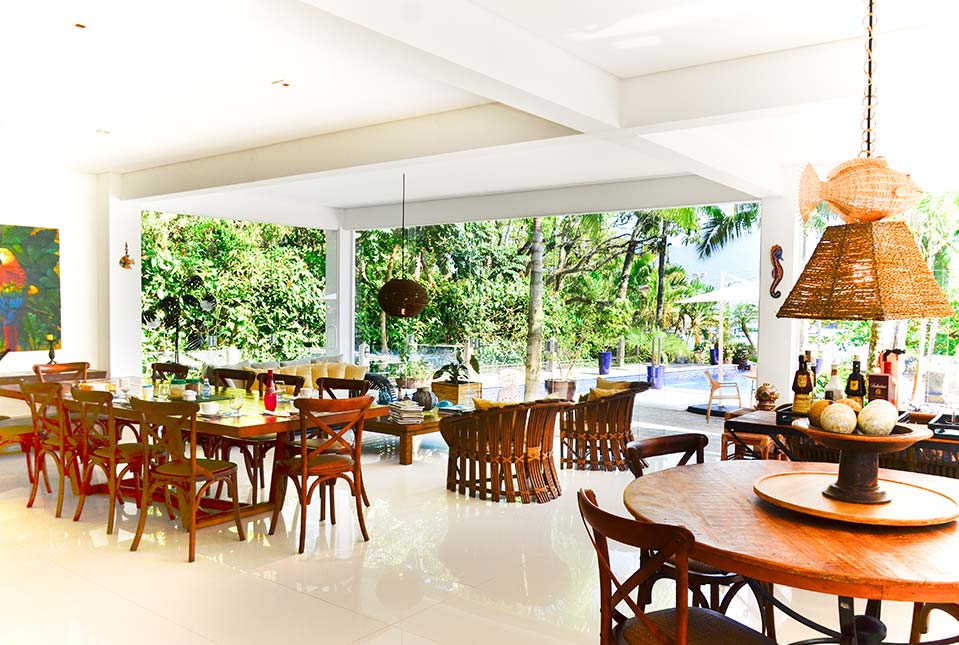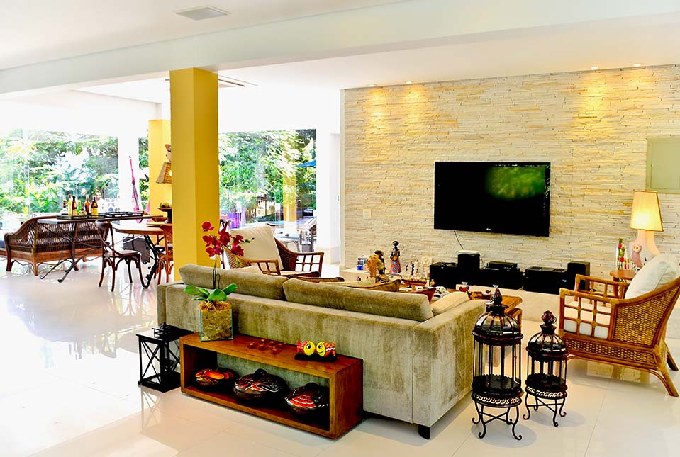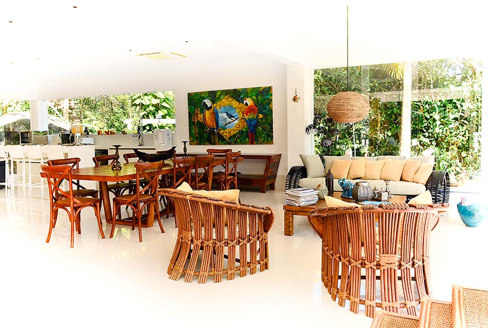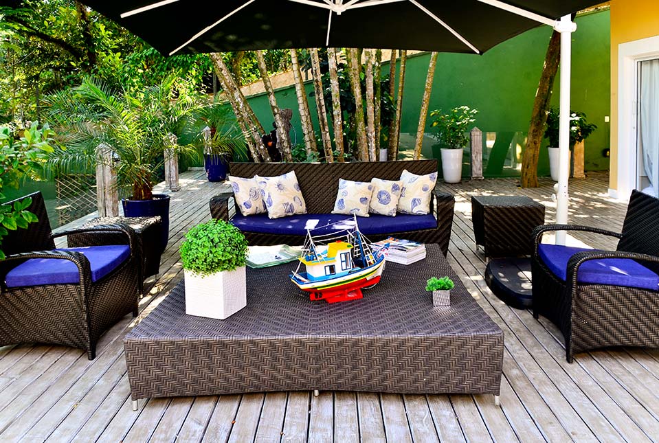 Para repousar ou realizar uma boa leitura, aproveite nossas salas de estar externas e o amplo living, um ambiente composto por peças de design em perfeita harmonia com os elementos da decoração beach style.
