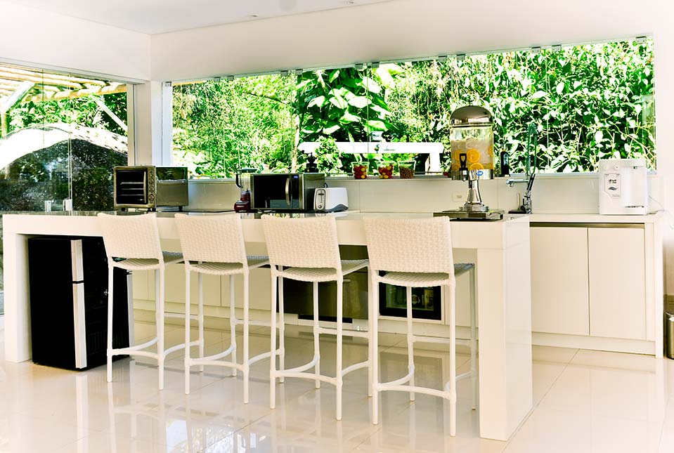 A cozinha gourmet é um lugar perfeito para os amantes da nobre arte. A casa conta também com espaço churrasco e completa estrutura, além de um forno a lenha, o convite ideal para desfrutar dos prazeres da gastronomia e de ótimas companhias.